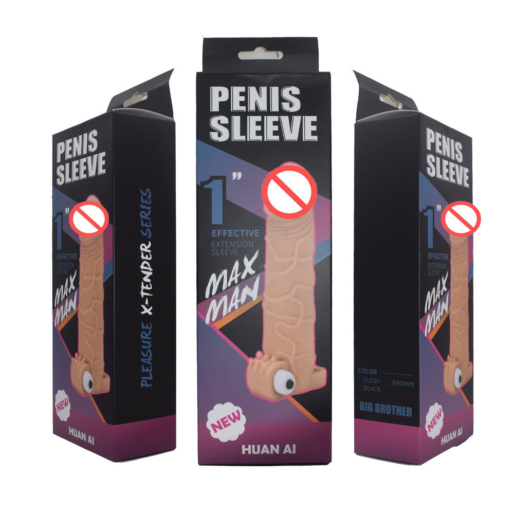 8 Inch Flesh Elastic Vibrating Sleeve Penis Extender Man Bigger Thicker Cock Wear