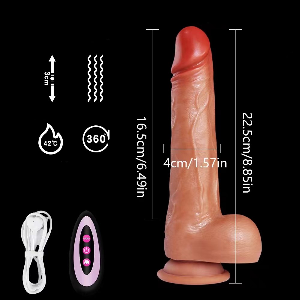 8 Inch Moving Auto Thrusting Heatable Soft Silicone Realistic Penis Male Vibrating Dildo Adult Toy