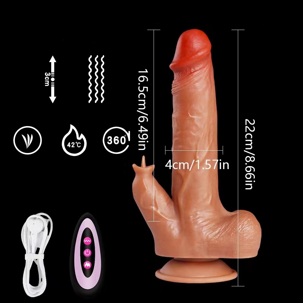 8 Inch Soft Silicone Realistic Thrusting Penis Dual Vibration Tongue Licking Remote Control Dildo With Suction Cup